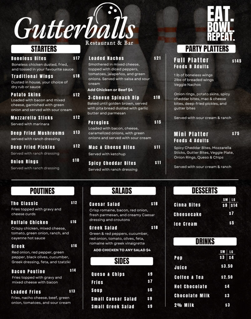 Before or after your games, or even if you’re not bowling, come in and enjoy a variety of freshly prepared munchies, burgers, wings, entrees and party platters.